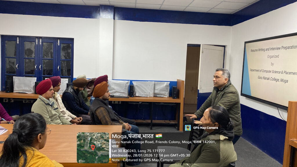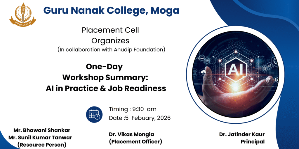 Guru Nanak College, Moga organized an Industry Internship Evaluation Program for Computer Science Students on 3 February 2026 at 10:00 a.m. The program was organized by the Institution Innovation Council (IIC) in collaboration with the Placement Cell, with the objective of evaluating students’ internship learning outcomes and strengthening industry–academia linkage.